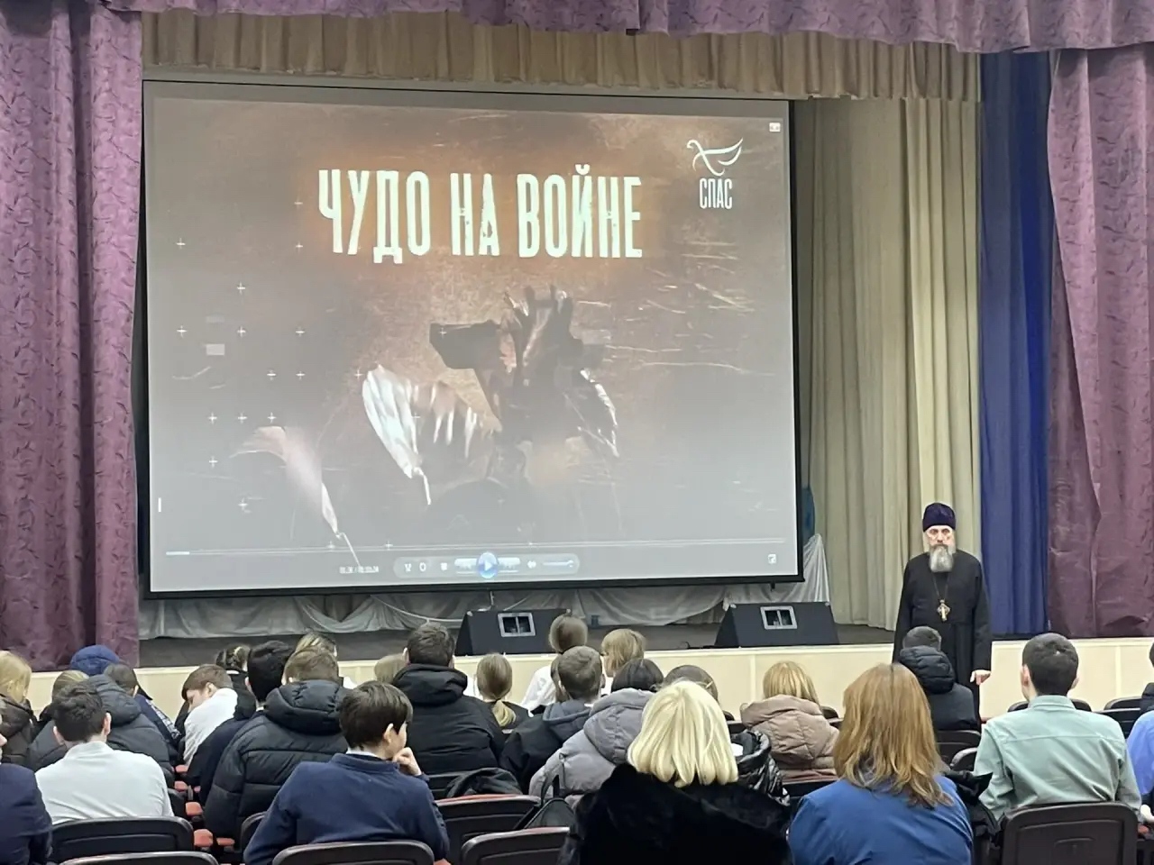 Перед началом сеанса к ребятам обратились  настоятель храма Успения Пресвятой Богородицы с. Завидово протоиерей Пётр Дубяго и Георгиевского храма с. Юрьево Девечье протоиерей Александр Азаренков. Священнослужители предложил школьникам вместе поразмышлять о том, что вообще можно назвать чудом и как это понятие звучит в контексте войны. Старшеклассники охотно делились своими мыслями, спорили, приводили примеры — разговор получился живым и откровенным.