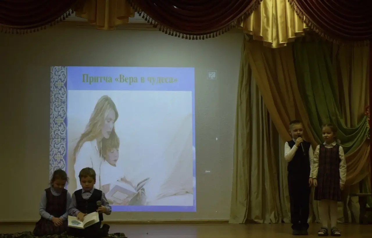 Праздник решили провести не формально, а через живые сценки: каждый класс подготовил небольшую инсценировку притчи. На сцене одна за другой оживали поучительные истории, а после каждого выступления зал вместе разбирал, о чем именно была эта притча. Говорили о помощи ближнему, о силе молитвы, о радости, которую можно находить в каждом дне, о дружбе, принятии другого человека таким, какой он есть, и, конечно, о многом другом.