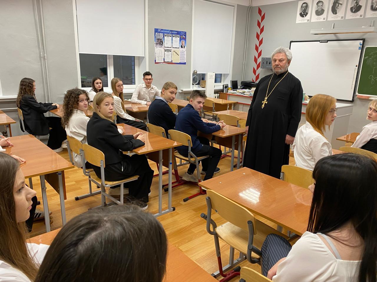 Настоятель храма Иоанна Предтечи п. Козлово, протоиерей Григорий Припутников, посетил местную школу, где рассказал учениками 5 класса интересные факты о жизни и сражениях Суворова.