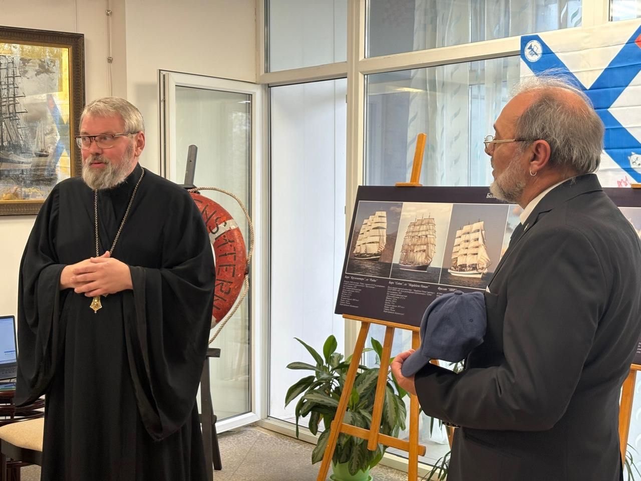 Протоиерей Олег поздравил всех с открытием и рассказал о святом Николае, покровителе путешественников и мореплавателей.