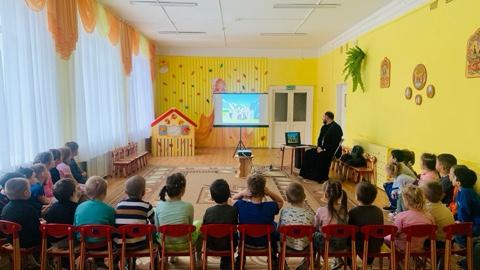 О добре, послушании и сотворении мира рассказал священник дошкольникам поселка Новозавидовский