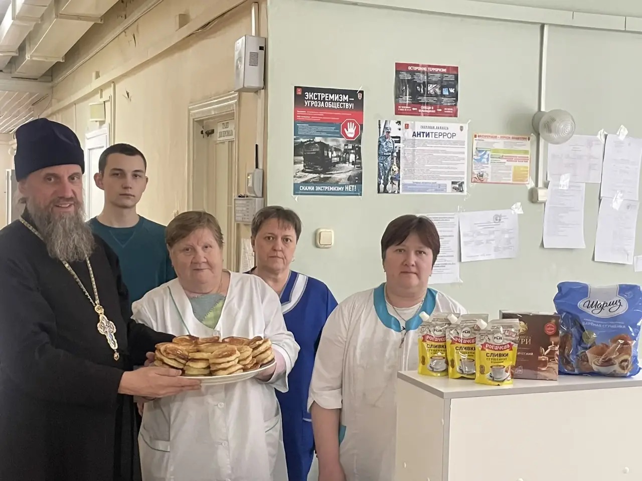 От Конаковского благочиния в отделение передали продукты — около 10 кг, а также оладьи и сладости к чаю.