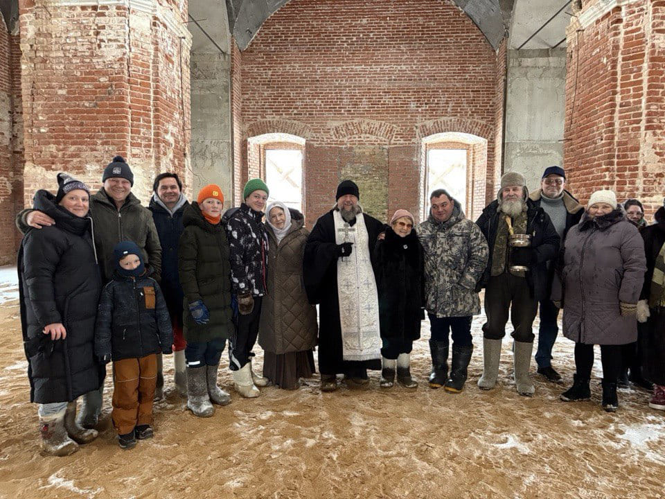 19 января, в день Крещения Господня, настоятель храма великомученика Георгия Победоносца протоиерей Александр Азаренков провел чин Великого освящения воды. На службу пришли жители окрестных деревень, в том числе и инвестор проекта Максим Вильховский.