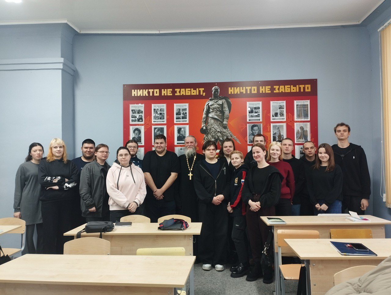 В старших классах и колледжах обсуждали понятие долга и жизненного выбора. Учащимся предлагали анализировать биографии военнослужащих, сотрудников экстренных служб и общественных деятелей. В Конаковском колледже иерей Виктор Никитенко говорил о важности и ответственности медиков на военной службе и отвечал на вопросы студентов.