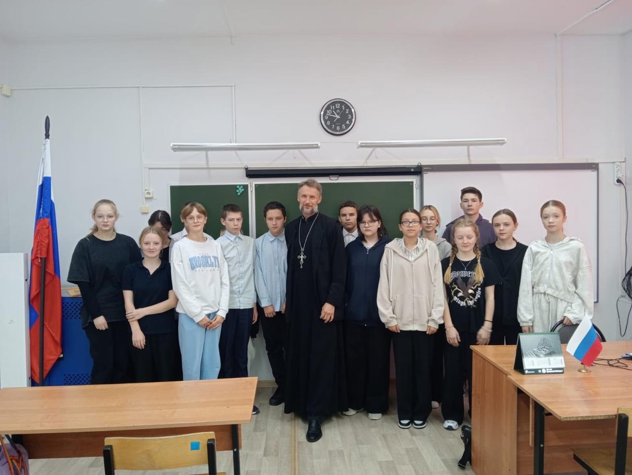 Со школьниками д. Ст. Мелково и с старшеклассниками школы п. Городня провел беседу протоиерей Андрей Преображенский, настоятель храма Рождества Пресвятой Богородицы с. Городня-на-Волге. Священник рассказал о смысле праздника и его главных исторических и духовных страницах.