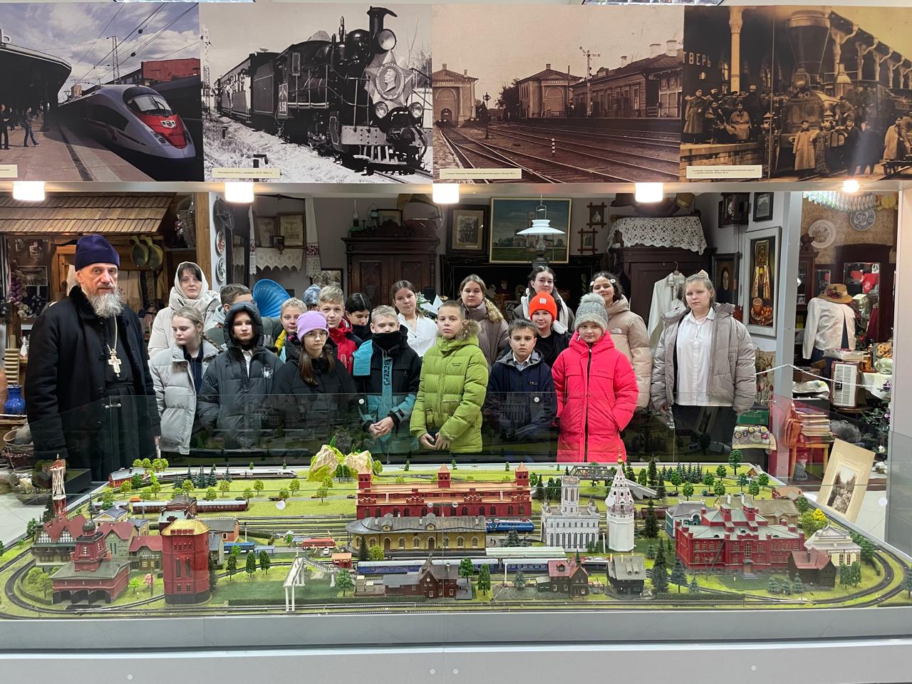 Особое внимание уделили появлению первых железных дорог, включая Царскосельскую (1838) и Николаевскую (1851), связавшую Санкт-Петербург и Москву. Священник с детьми рассмотрели макет железной дороги в музее и узнали много интересного о строительстве вокзалов, их архитекторах и многое другое.