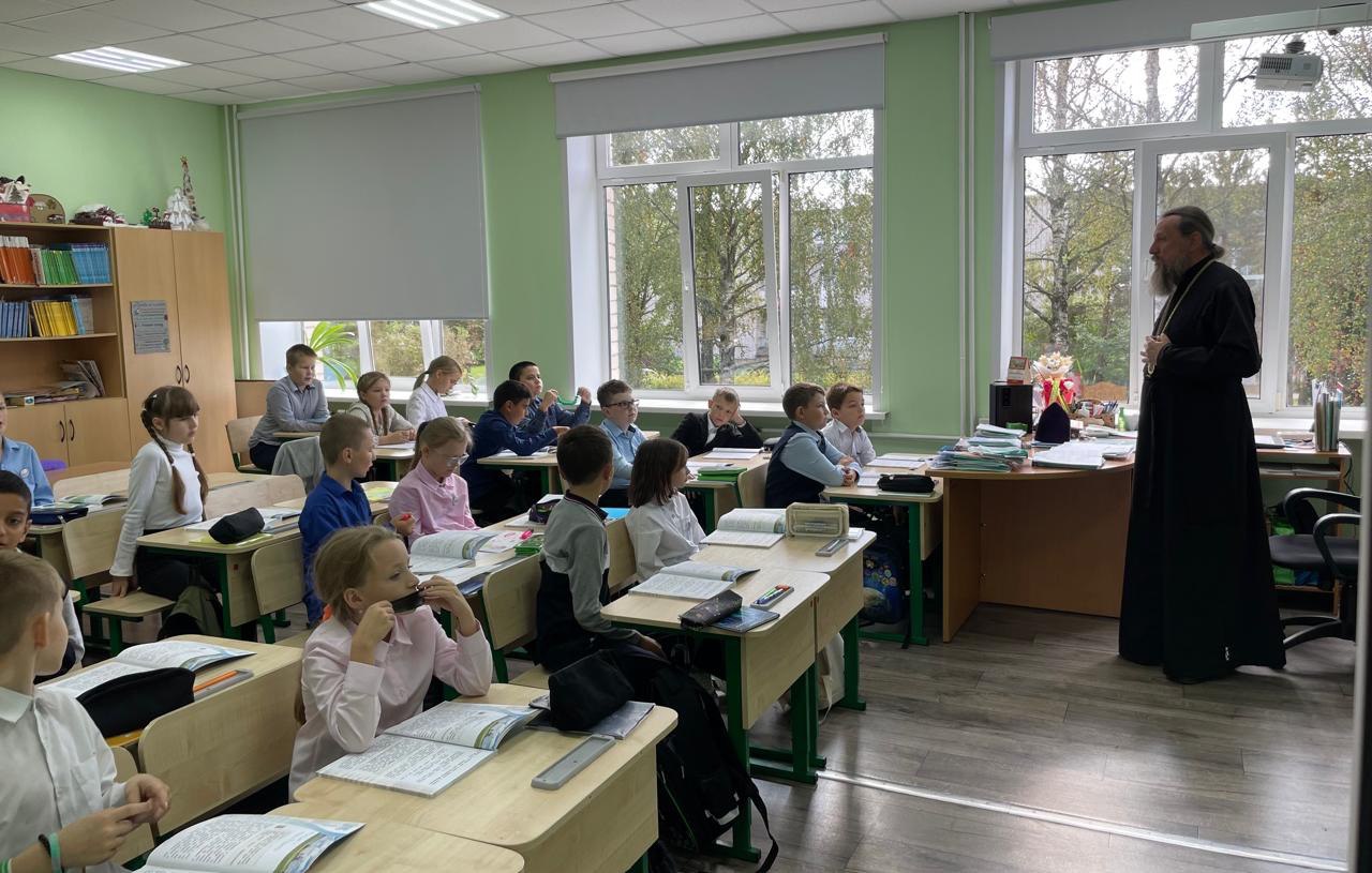 24 октября, накануне осенних каникул, в рамках программы духовнонравственного воспитания в четвертом классе школы с. Завидово прошел урок «Основы православной культуры», который провел настоятель храма Успения Пресвятой Богородицы протоиерей Петр Дубяго.