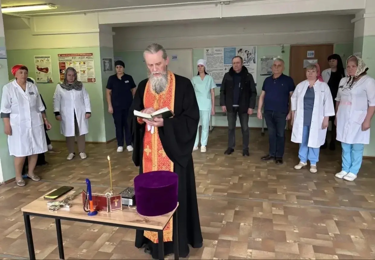 На службе были и жители города, и пациенты больницы. После богослужения иерей Виктор зашёл в палаты, пообщался с пациентами и обсудил с персоналом, как дальше выстроить духовную поддержку пациентов — в храме и прямо в отделениях.