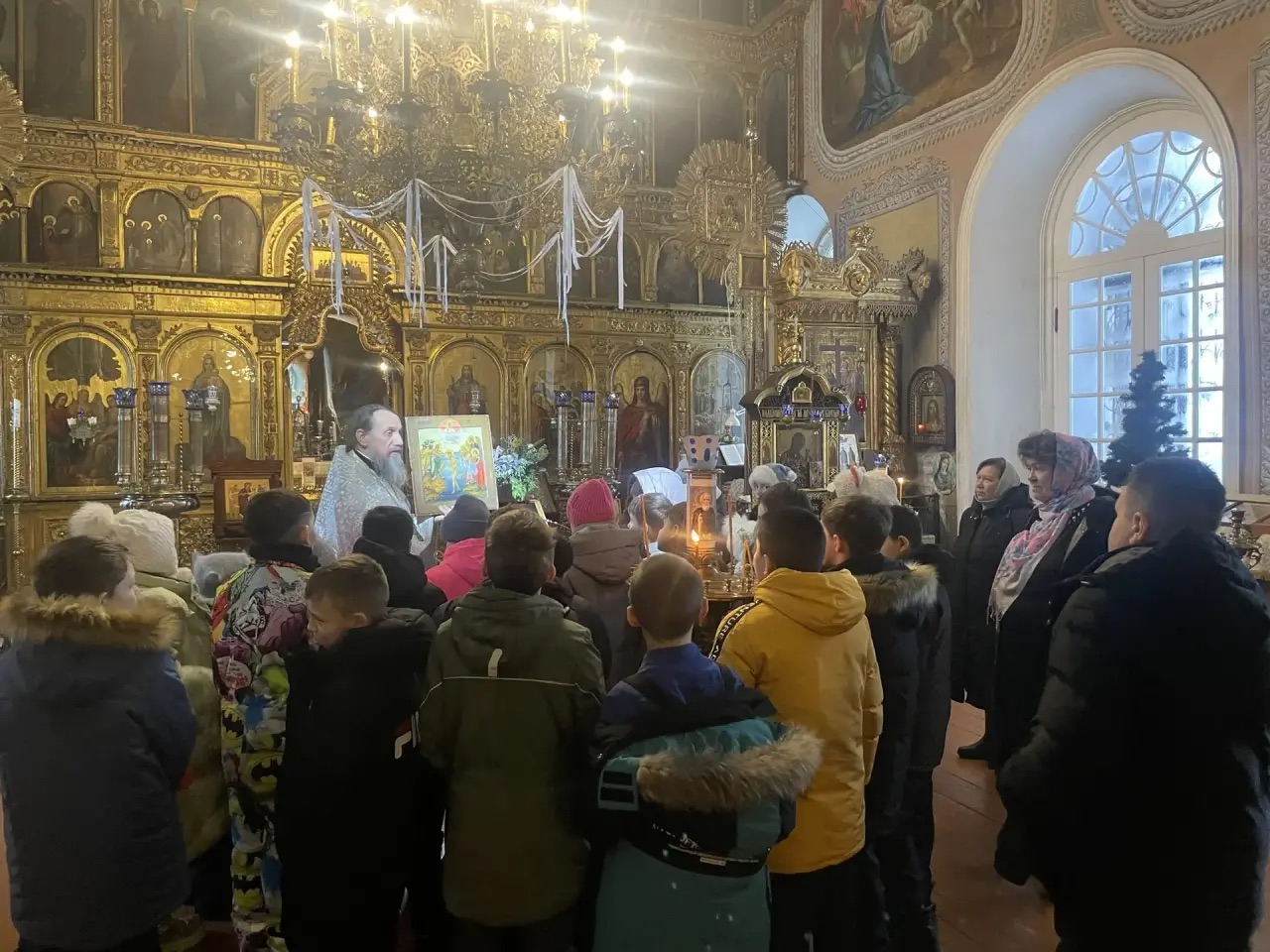 Настоятель прихода, протоиерей Петр Дубяго, поздравил всех с великим праздником. Он напомнил взрослым и детям, что Крещение Господне тесно связано с евангельским событием — крещением Иисуса Христа в реке Иордан, которое совершил Иоанн Креститель. В этот момент произошло чудо: Святой Дух в облике голубя сошел с небес, и глас Божий провозгласил Иисуса Сыном.