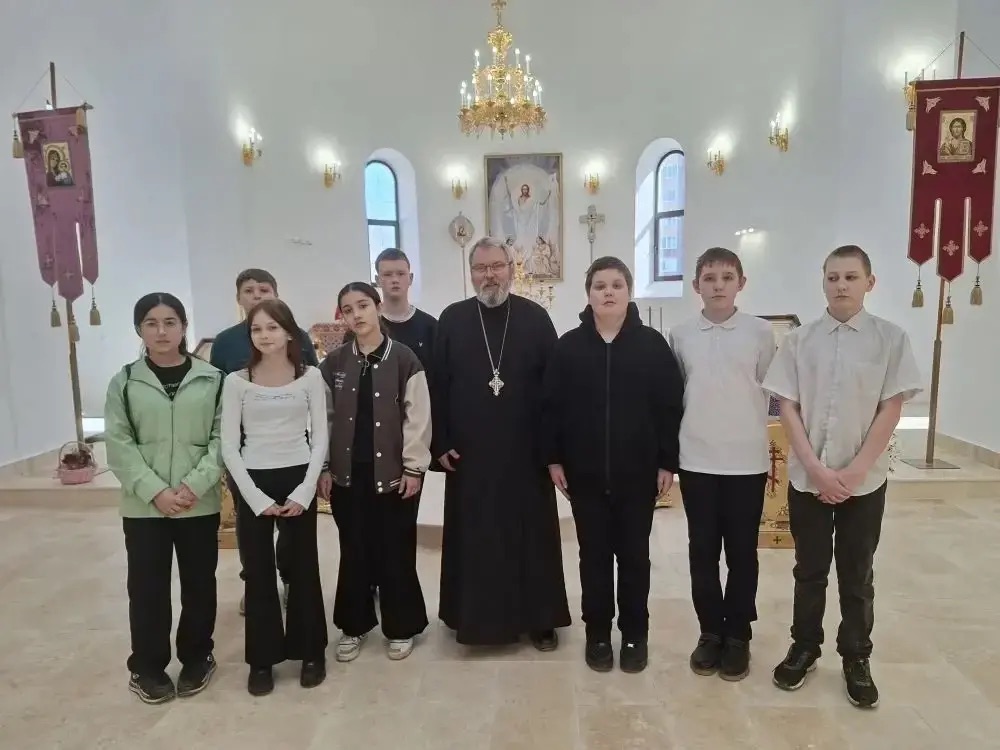 Ребят встретил настоятель — протоиерей Олег Шерышев. Он показал, как устроен храм, где что находится и почему это важно. И, что особенно ценно, объяснял всё простыми словами — так, чтобы детям было ясно, а не «как в учебнике».