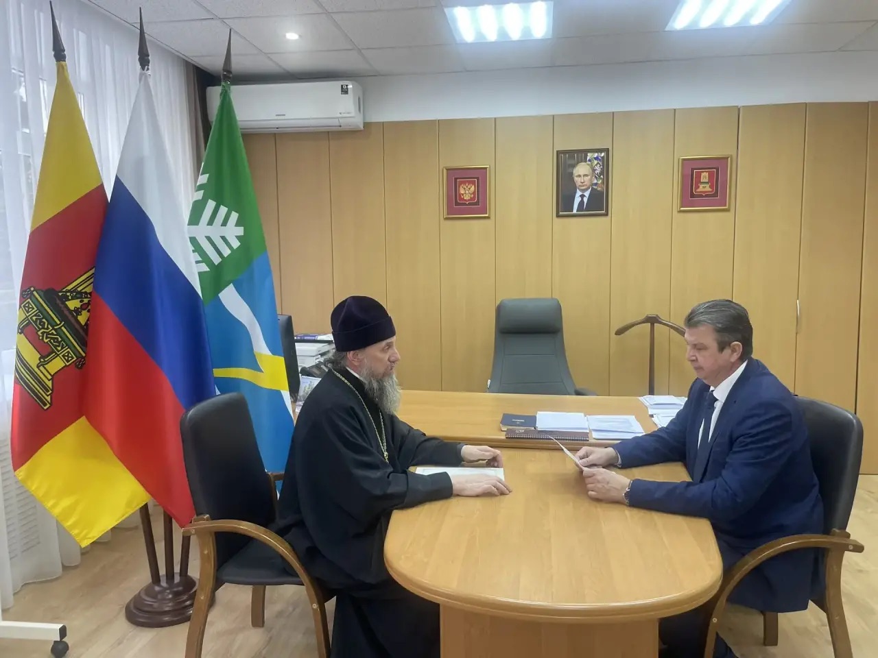 18 февраля в администрации Конаковского муниципального округа прошла встреча благочинного церковного округа протоиерея Петра Дубяго и главы муниципального округа А.М. Пляскина. Обсуждали выбор модуля «Основы православной культуры» на следующий учебный год.