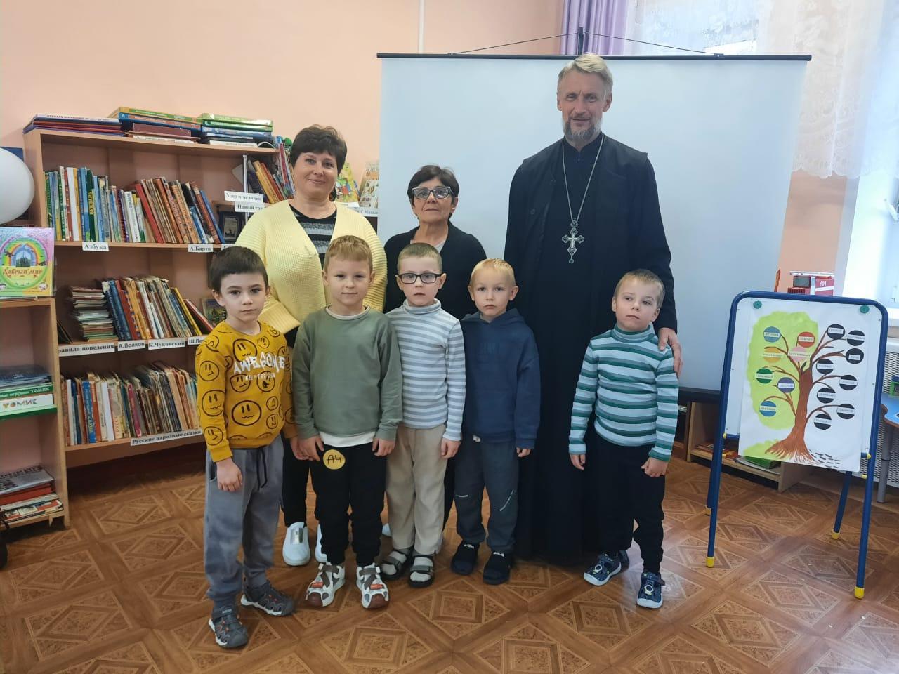 В рамках программы «Добрый мир» протоиерей Андрей Преображенский храма Рождества Пресвятой Богородицы с. Городня-на-Волге побеседовал с дошкольниками п. Радченко. Тема разговора — «Какие добрые дела мы можем сделать?». Вместе посмотрели видеоспектакль «Добрые дела», обсудили разницу между добрыми намерениями и реальными поступками. С помощью наглядного пособия «Дерево добра» священник разобрал с детьми различные качества человеческой души.