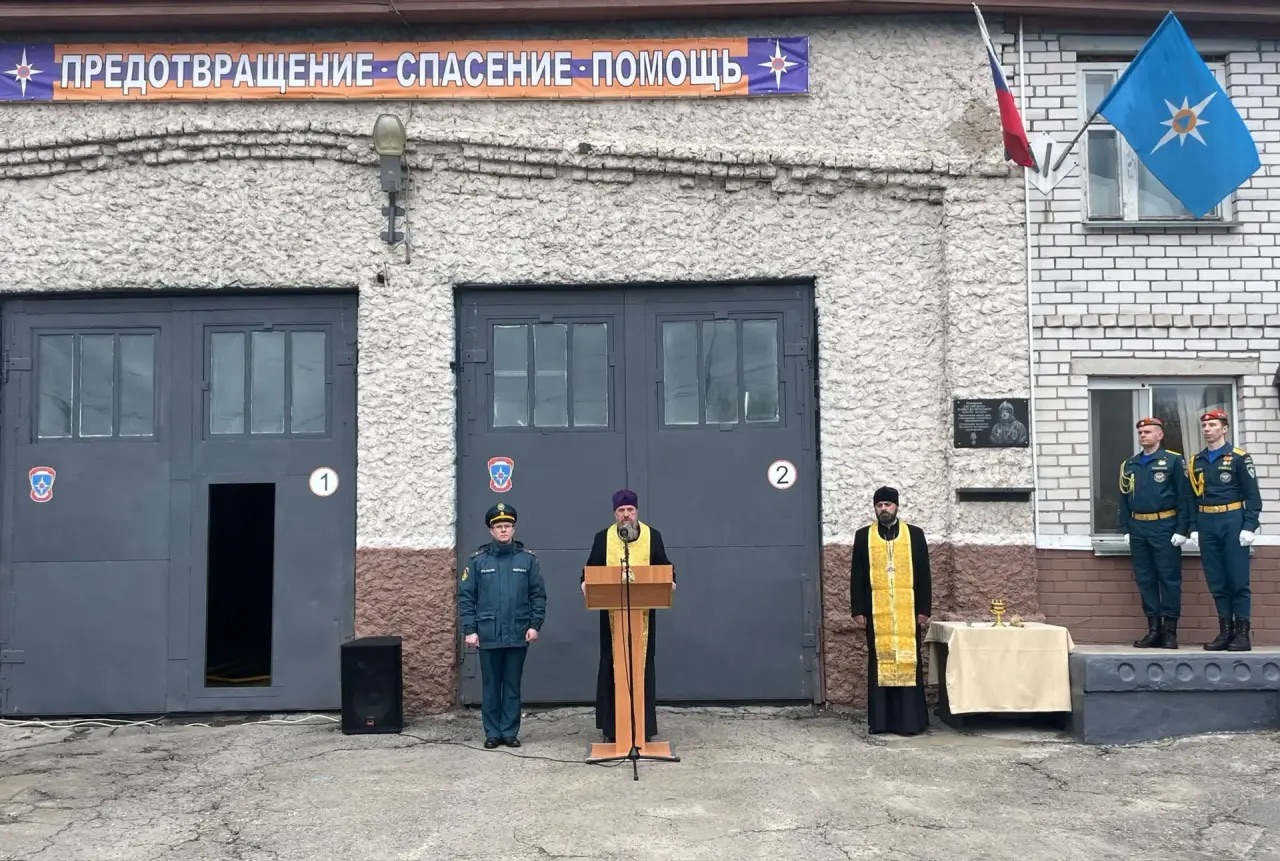 В Новозавидовском открыли мемориальную доску пожарному Павлу Евстигнееву с участием духовенства