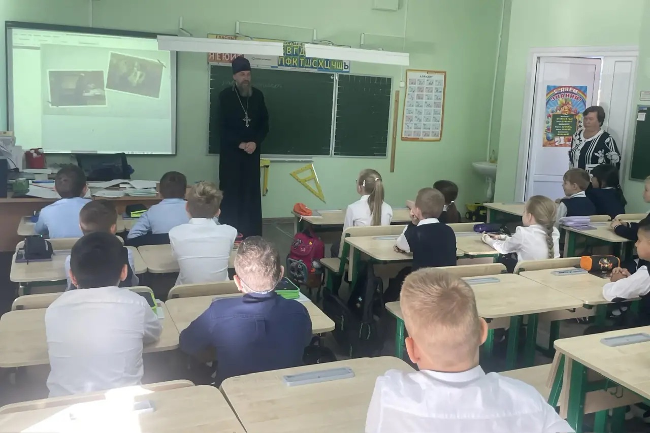 В с.Завидово священник провел урок ОРКСЭ для четвероклассников на тему «Икона»