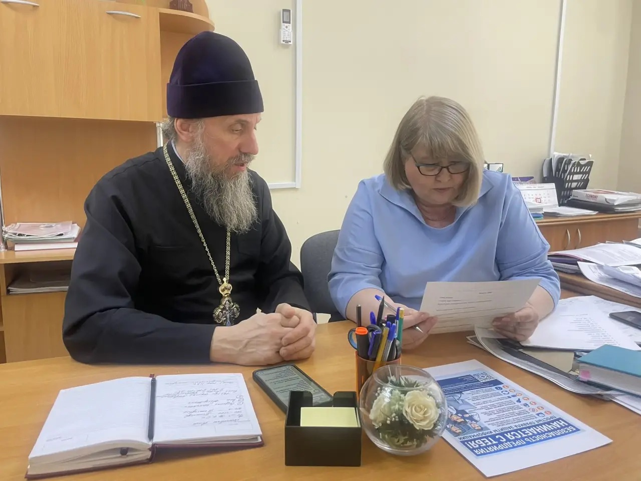 24 февраля в администрации г. Конаково состоялась рабочая встреча: благочинный округа протоиерей Пётр Дубяго обсудил с начальником управления культуры Мариной Лордовной Маматказиной показ духовных фильмов в кинотеатрах досуговых центров муниципального округа, а также на приходах.