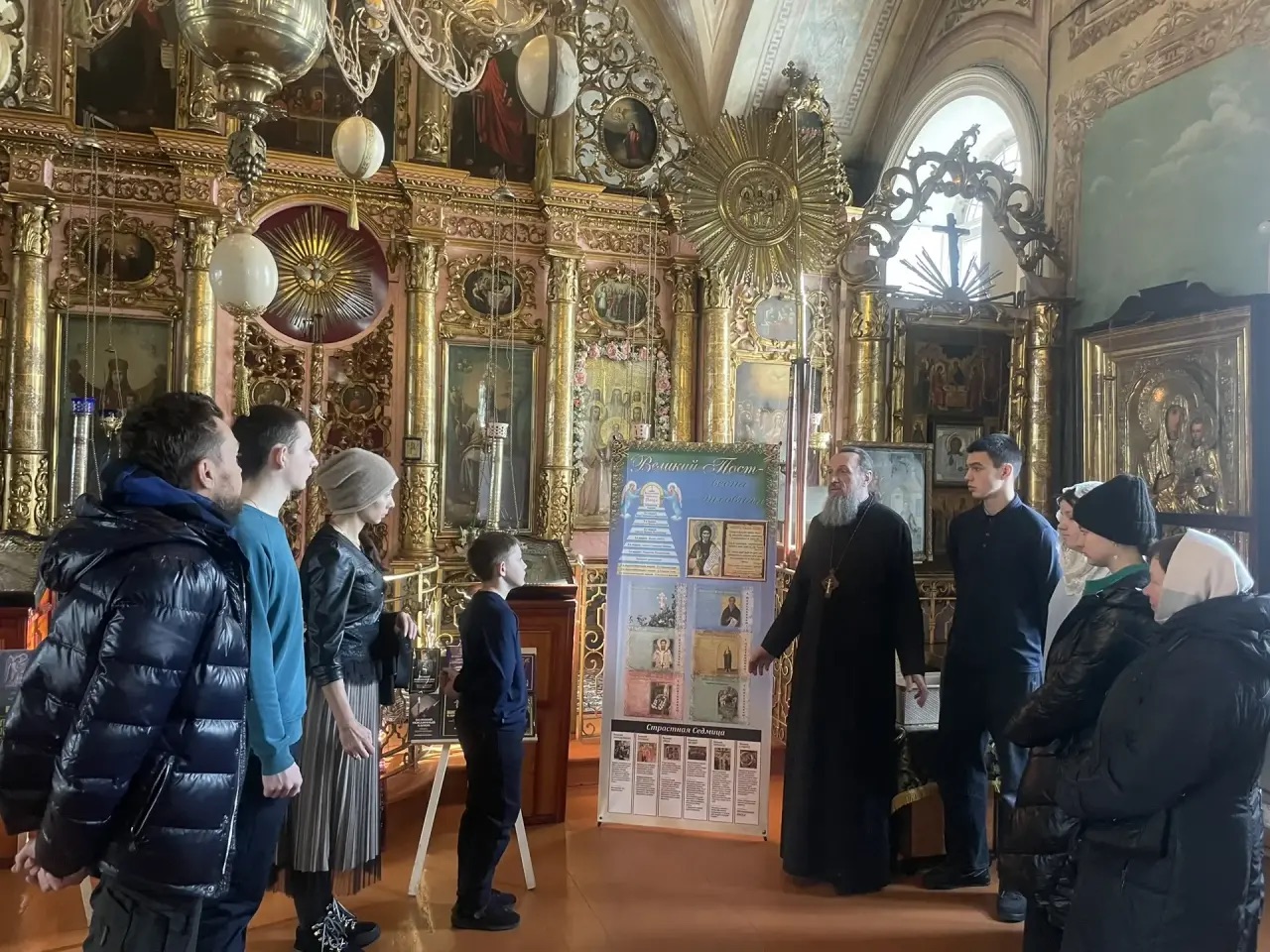 Священник Пётр также рассказал, что подготовка к посту — это не только внутренний настрой, но и внешние изменения. После Масленицы в храме и дома традиционно проводят уборку. Пост, как он выразился, «виден глазами»: меняются облачения, оформление икон, даже алтарная завеса. Чёрные и фиолетовые цвета помогают почувствовать строгость этого времени. Подростки сами помогали облачать иконы в тёмные полотна, которые бережно хранятся в храме уже не одно поколение.