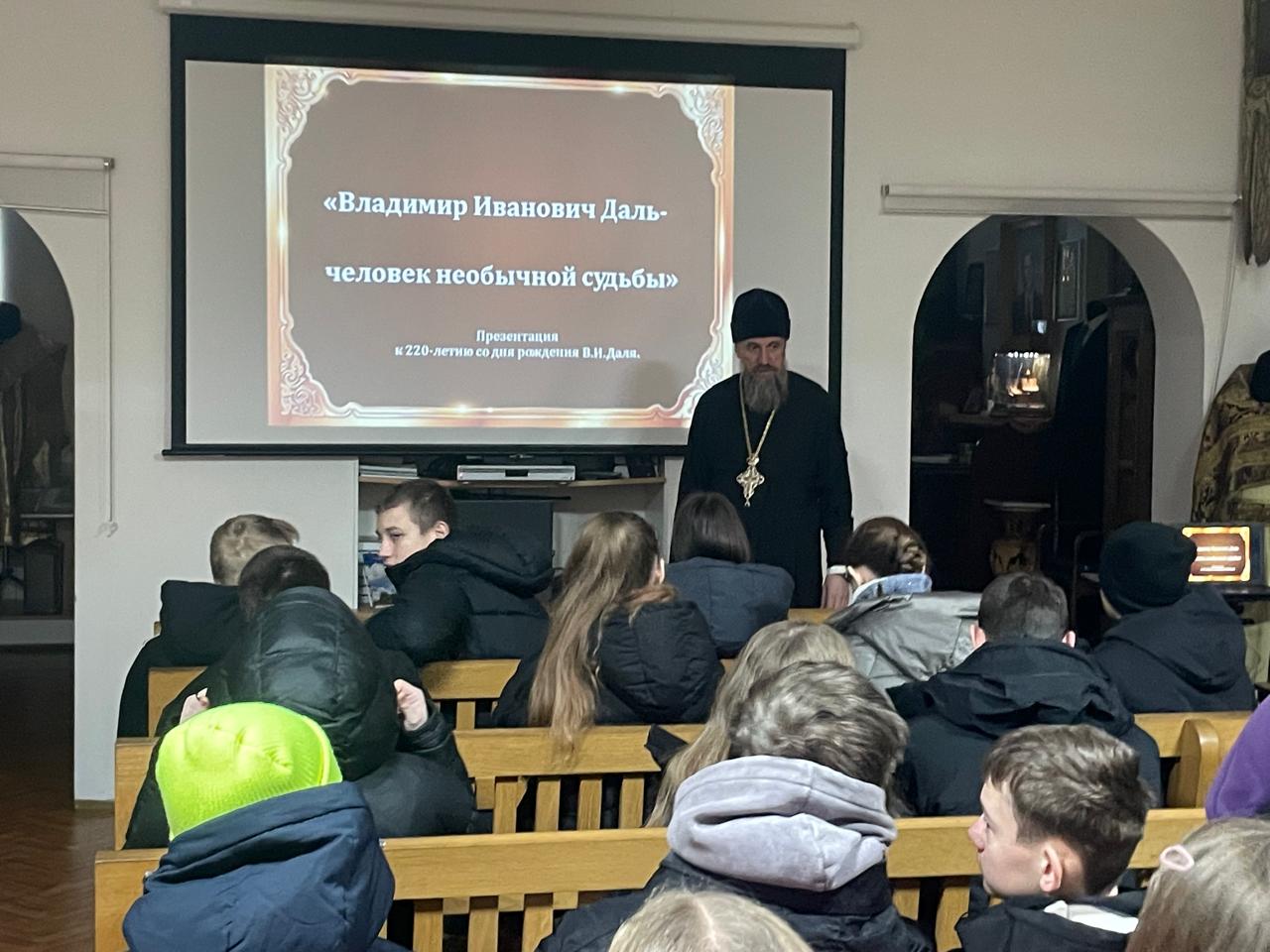 Накануне учащиеся 7 и 8 классов посетили музей. Настоятель Успенской церкви, протоиерей Пётр Дубяго, показал детям книги общественной и духовной тематики. Особый интерес вызвали словари по церковным вопросам. Дети смогли сравнить разные издания. Священник рассказал о печатных и рукописных книгах, представленных в витринах, и объяснил, как словари помогают понимать церковнославянские слова, используемые в богослужениях.